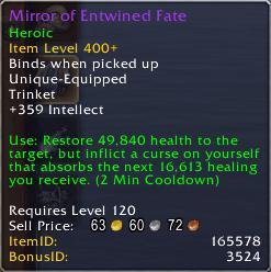 大秘境中这一饰品的用处会多一些,因为你没有其他治疗的帮忙。如果你需要一个手段来刷吐金和荨麻,那它会是一个不错的选择。当然这放弃了一部分dps。
