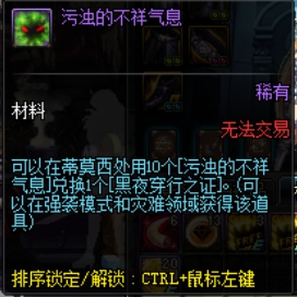 这些装备涉及两种材料,小材料名为“污浊的不祥气息”,大材料名为“黑夜穿行之证”,获取途径为哈林地区的强袭模式,在哈林地区选择地下城的界面右下角打开强袭模式即可挑战。