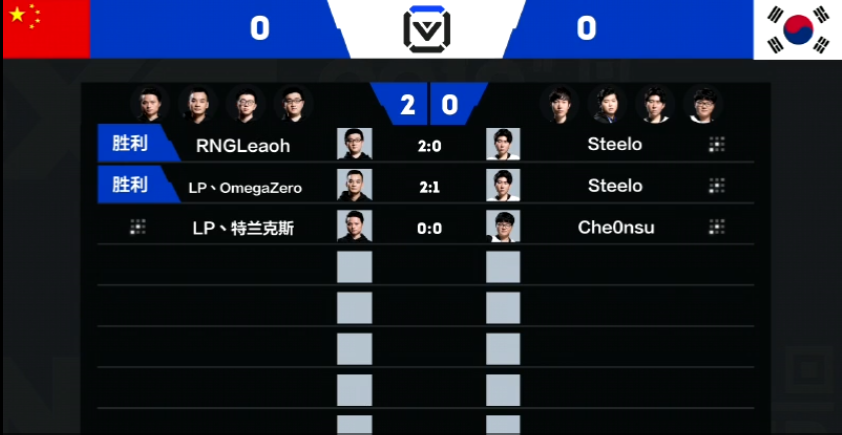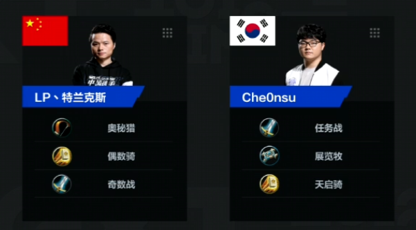 下面带来今天的第三场比赛,由中国的特兰克斯对阵韩国的cheOnsu,前两场中国队的出场队员都取得了胜利,目前2:0领先。本场的解说是比利君、清清和瓦娘。