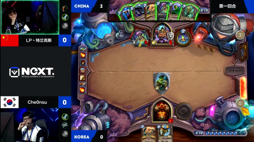 12月17日,网易电竞组织的NeXT系列赛《炉石传说》项目再燃战火,继线上选拔赛之后,今天进行线下对抗赛的总决赛。4名中国选手将和4名韩国选手进行团体对抗赛,一共进行两个回合,采用征服模式的3ban1赛制,标准模式。