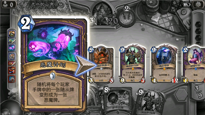 No.3 恶魔计划,为数不多能够直接破坏对手手中随从的卡牌,相信有不少人被恶魔计划变掉手中的大蓝龙、国王等卡而咬牙切齿吧?