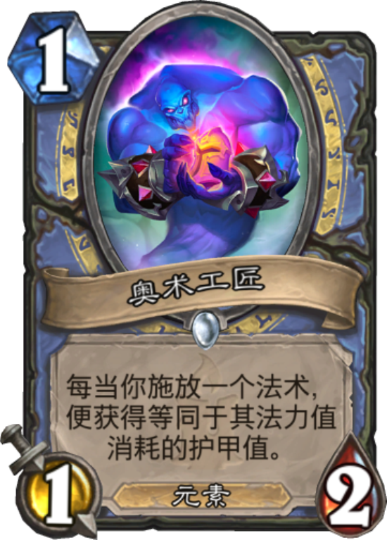 排名第6的是奥术工匠,在法师没了冰箱之后,生存能力有时候确实会存在一些问题,这张低费卡很好配合,可以给法师加上很多护甲,在目前的奇数法体系中很受重视,说不定就可以靠它保命呢。