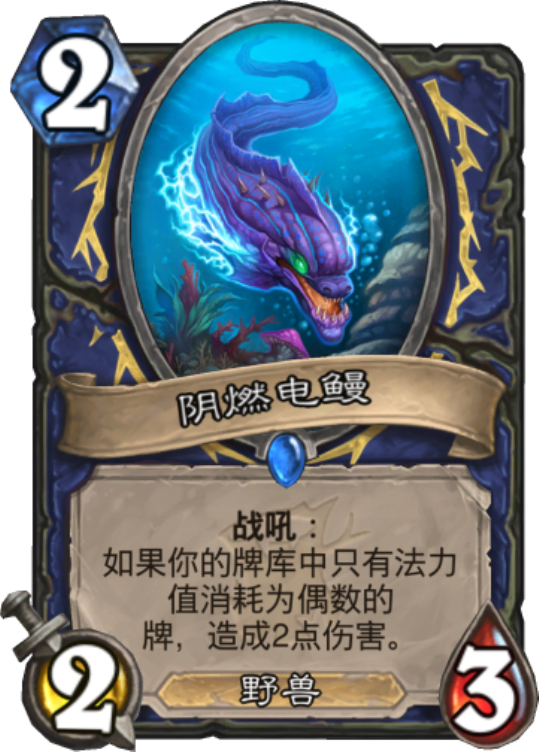 第3名就变成了萨满的卡了,这张卡只有偶数萨才会用,因为没有其他卡组的连累,胜率反而更高,223就已经不亏身材了,而打2的特效可以让萨满在前期抢到很多节奏,它是偶数萨兴起的关键卡牌之一。