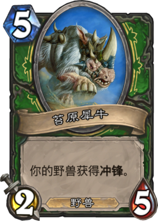 大家都知道,很多野兽卡都是猎人的,并且相互之间也有一些配合,比如这张猎人的苔原犀牛,本身是野兽,还能让野兽冲锋,性价比一下子就出来了,有它在就能多很多配合,无论是解场,还是打脸,或者是当回合触发一些质量很高的亡语,它都是其中的关键,在猎人还比较强势的当前环境中自然胜率不错了。