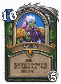 10费猎人大导演,知道前期释放够足够的法术,这一波强大非常,而猎人的法术都是什么呢?动物伙伴、杀戮命令、猎人印记、奥秘、法术翡翠、侧翼打击等等,造价都很低,所以祖尔金足矣支撑接近整套牌,不过最完整的应该还要一个死亡猎手。