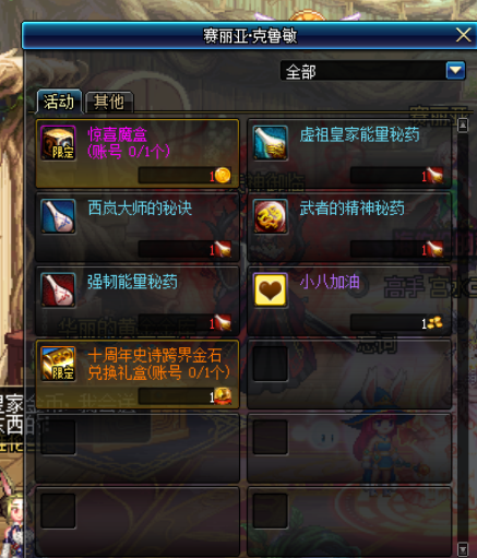 不过对于还留着该跨界石的玩家,那就可以去赛利亚出兑换礼盒啦!礼盒中会有一堆追忆道具,对于玩家来说白给的不要白不要。