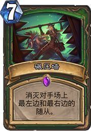 很多法术猎和亡语猎玩家,还是喜欢在卡组中放上一张碾压墙,我们也常常会忘掉猎人还有这张法术,失手把两个大怪放在旁边,然后碾压墙一拍,直接GG。所以不得不说这次退环境对偏慢速猎人卡组的影响非常大。
