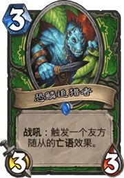 游戏中,前期通过少量的控场卡牌来稳定局势,中期利用魔暴龙蛋、食肉魔块等亡语卡牌打出联动,最后在后期招募大怪斩杀对手,基本上就是轻松地拿取胜利了。可以说亡语猎是一套节奏完美的中慢速卡组,退环境后将对猎人整体实力造成很大的影响。