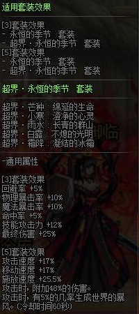 总计提升20%的黄追和爆追,35%的属性白字,21%的三攻,25的所攻,18%的技能伤害,40点属强,和布甲一样的4级50和85技能,同时还有14%的暴击。