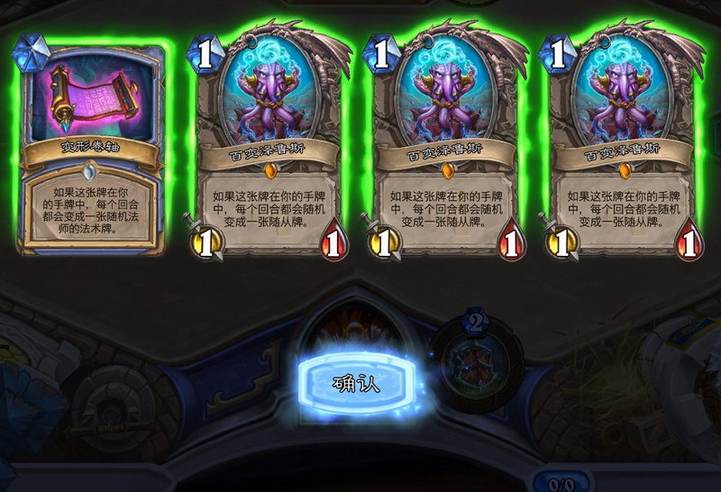 卡组简介:无需组牌,选择一个职业,所有牌库都会被百变泽鲁斯和变形卷轴填满
