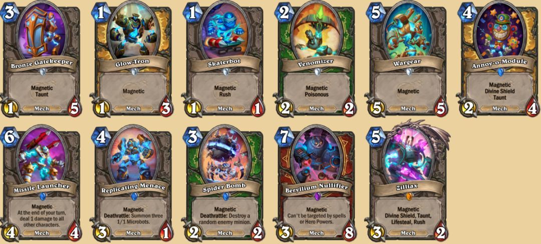是磁力!我们砰砰计划使用最多的机械是谁?答案肯定只有一个:奇利亚斯。就是这么全能的机械随从,也只是当做单卡使用,基本上没有磁力与他配合。大多数时候都是充当一个回血、护脸的角色。那我们就来说说为啥磁力这看似非常牛逼的机制,会没人使用呢?
