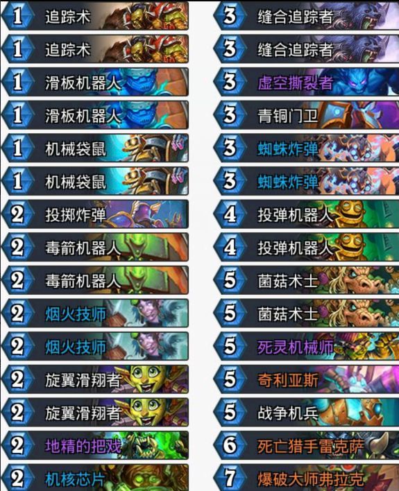 我们再来分析一下磁力卡组为啥无法对抗天梯的主流卡组,我们就选一套看起来比较靠谱的机械猎来进行说明。