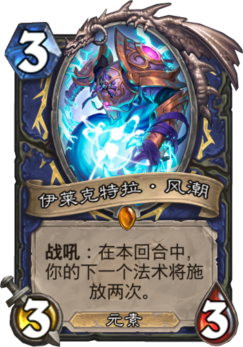 萨满拥有品种繁多,各式各样的法术,有直伤有清场有过牌有恢复有变形,可以轻松面对任何场面。伊莱克特拉风潮作为萨满的三费传说随从,战吼简直强到爆炸,在本回合内,我方下个法术将会施放两次,双重闪电风暴,双重治疗之雨,双重火山爆发,一次使用双倍收益。当然,伊莱克特拉风潮还是比较卡手的,往往需要在高费才能发挥出作用,这点大家要注意。