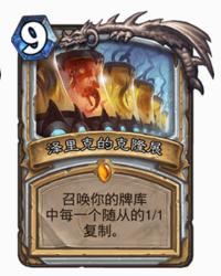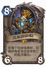 最经典的就是克总了,这类召唤顾名思义,需要随从死亡才能实现的特殊召唤,而限定条件各有不同,克总是复活本回合所有友方随从,DK术士是复活本局游戏的恶魔,巫术时刻则是复活本局游戏的一个野兽……