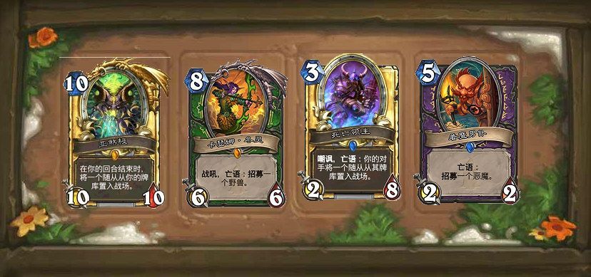 当然也会舍弃另外一些强力的随从。最典型的就是德鲁伊的橡树的召唤,让德鲁伊舍弃了前期的低费随从;术士的着魔男仆,也让术士抛弃了蓝胖子这些前期极佳的随从。