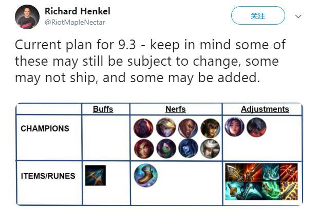 随着9.3版本测试服周期第二周到来,设计师会在本周稍后一些时间锁定这个补丁的具体改动内容。而在1月29日中午,平衡团队的负责人MapleNectar,在个人推特上分享了9.3版本的目前改动计划化。他们仍然会继续关注这份改动列表上的目标,有一些可能不会立即上线正式服,或许有一些其他的改动内容添加进来。