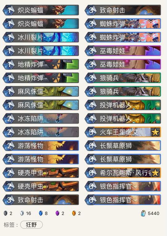 中立牌。除了女王希尔瓦娜斯,巫毒娃娃这些控场牌之外。还有麻风侏儒、后街男巫,地精炸弹这些亡语打对方英雄的牌(炸弹猎表示很赞)。