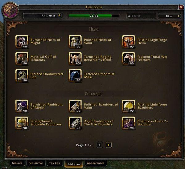久经沙场的传家宝护甲涂层:将一件传家宝护具、首饰、盾牌或副手装备升级至120级。只对升至110级的传家宝物品有效。