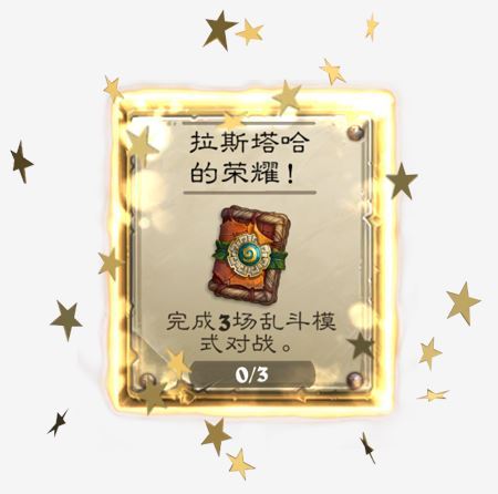 可重复完成的全新任务:拉斯塔哈的荣耀——完成 3 场乱斗模式对战,赢得 1 包“拉斯塔哈的大乱斗”卡牌包。每星期四乱斗开始时即可接到任务。