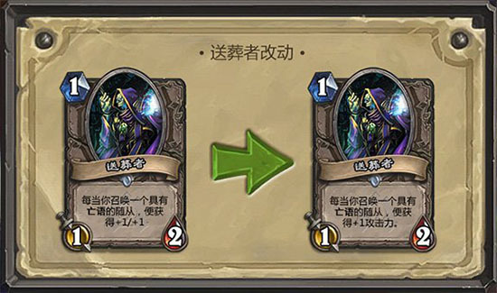之前有一句话说“被王牌打死的送葬者都能绕地球一圈了”,这句话不仅仅体现出送葬者这张卡牌的火热程度,也从另一个方面展示了这套卡组的强大之处。毕竟要到7攻王牌才能触发效果,而对于送葬者这说涨到7攻简直轻轻松松,足以见证这张卡的强大,只能说没削弱之前太强了。