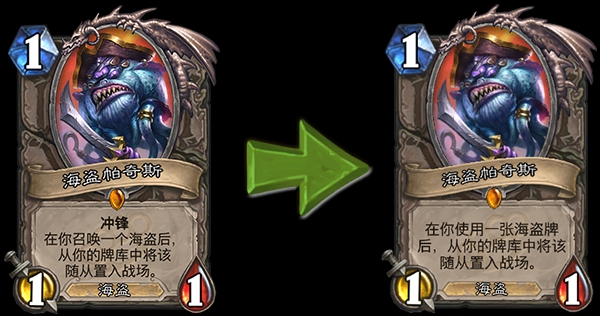 作为一套现象级的卡组,海盗战的出现让玩家们明白了卡组的强度原来可以差几个档次,毕竟当时的海盗战可以爆锤其他卡组。而其中帕奇斯不单单发挥着一个冲锋小野菊的作用,还能压缩卡库,简直就是神卡一样的存在,所以这张卡避免不了被削弱。