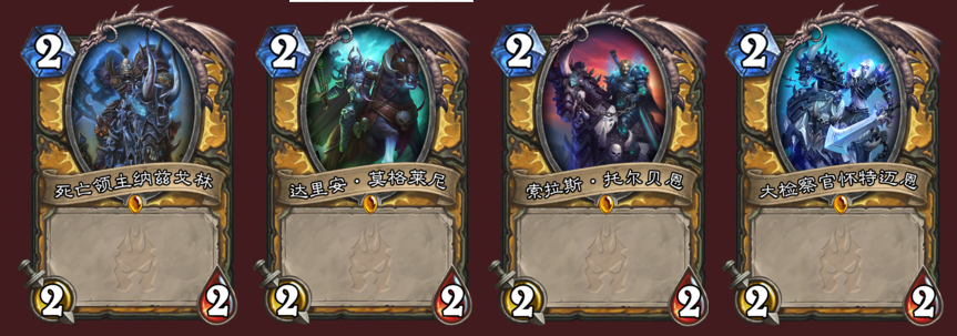 在冰封王座版本中,圣骑士的DK卡牌黑锋骑士乌瑟尔因为强大的武器受到了玩家们的追捧,其英雄技能召唤4个随机召唤骑士之一的能力反而没那么受到重视。直到玩家们开发出能够1回合凑齐4个不同的天启骑士,实现无差别斩杀对手的目的。在这个斩杀领域,任何职业叠再厚的护甲都无济于事,这个卡组成为了“护甲都是纸”之笑谈的第一次实际印证。