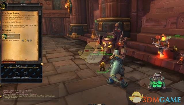 返回赞达拉港口,告诉加里维克斯Grizzek Fizzwrench已经死很久了。加里维克斯听到你的消息感到很满意。现在就去找加兹鲁维拿机械鹦鹉宠物。