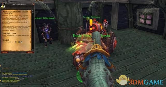 加里维克斯让你去塔纳利斯杀死一个叫做Grizzek Fizzwrench的地精,这个地精是加里维克斯派去研究艾泽里特的。因为这个地精不太会做生意,所以加里维克斯要解决了他。本以为他已经死了,但是最近加里维克斯听说他没死,所以想派你去除掉他。