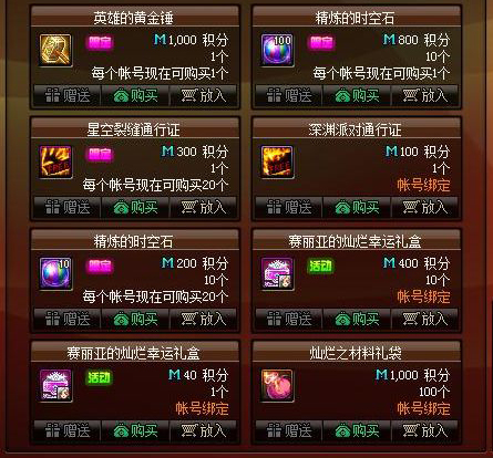 在最近的一次更新上,积分商城中两个宝珠会被其它道具所代替,分别是英雄的黄金锤和100个精炼的时空石,其中换黄金锤自然是不划算的,主要还是考虑精炼时空石带来的价值,跟之前200积分换10个精炼时空石相比,这次重新上架的奖励明显良心了不少,所以后续的积分都可以用来兑换精炼时空石。