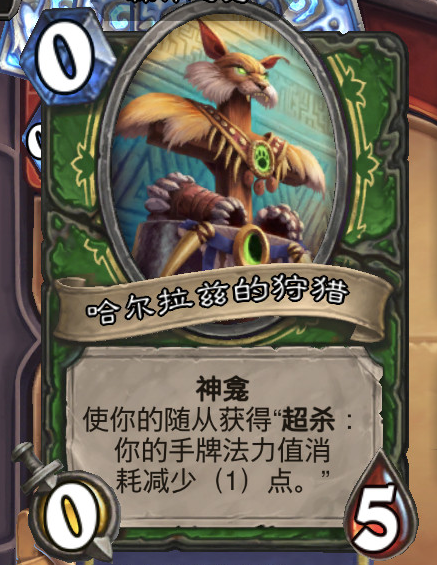 猎人-哈尔拉兹的狩猎:使随从获得超杀,触发超杀会使手牌法力值减1。