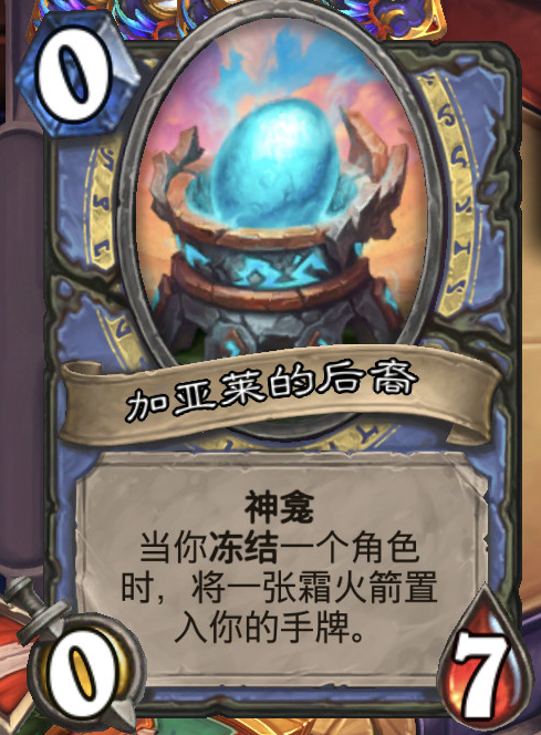 法师-加亚莱的后裔:当你冻结一个随从的时候获得一张“霜火箭”(0费打1)。