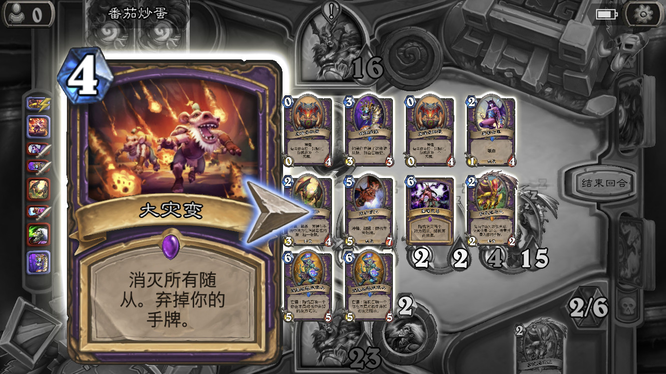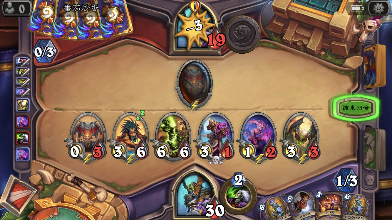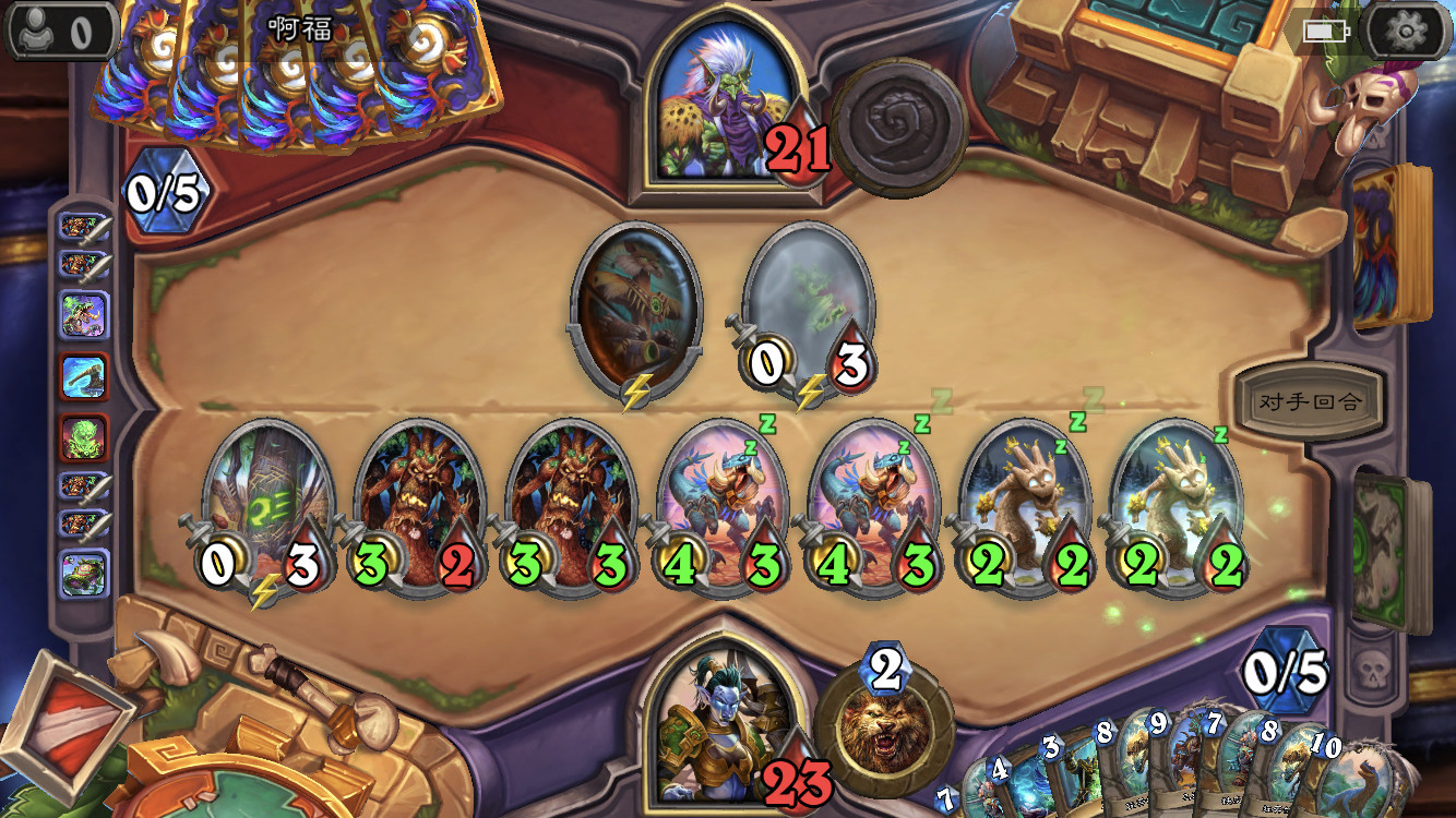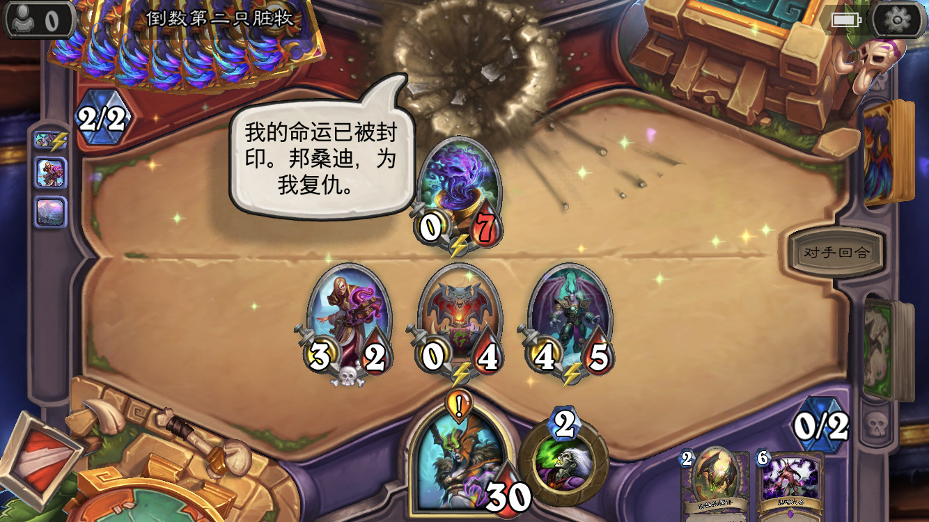 要选术士的原因就是清场后还能再铺一波,此消彼长带来的胜负差距无限扩大瞬间扭转局势。可以看到前一秒还是对方大优势一地的随从,下一秒就是对面场面清空我还有一地的随从,就是稳!