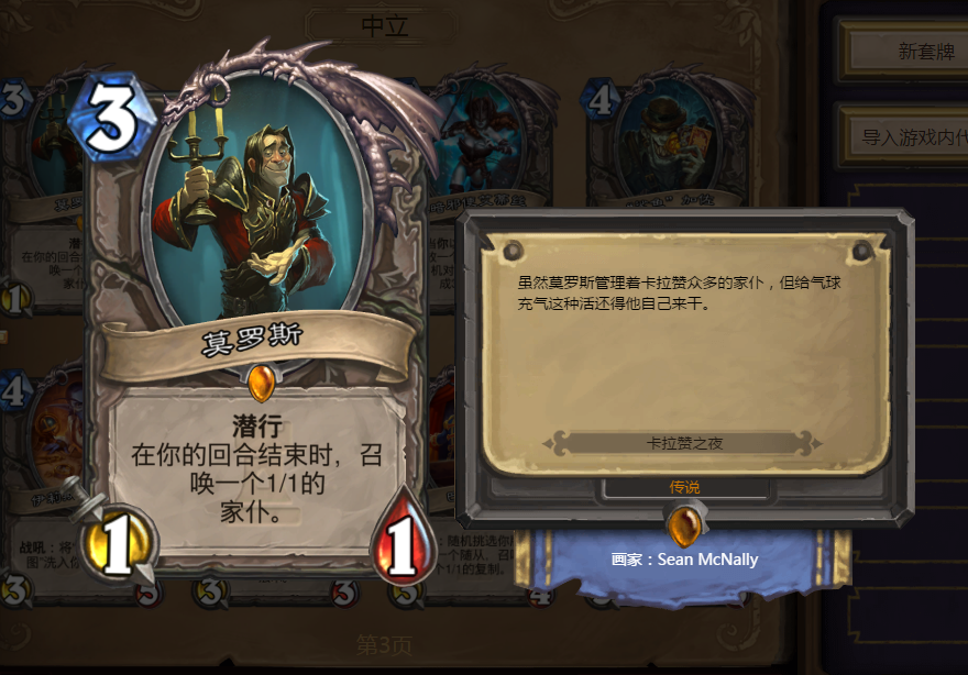 不管从身材还是效果来看,莫罗斯都不是一张超值的橙卡,以至于这张卡从出现开始就很少有人问津。但随着盗贼任务系统的出现,玩家们惊奇的发现莫罗斯可以很高效的帮助盗贼做任务,又因为盗贼任务的强大,使得很多玩家在那个时间段把撕掉的莫罗斯又合了回来。但随着盗贼任务的调整和其他卡牌的加入,莫罗斯再次被打入冷宫直至今日。