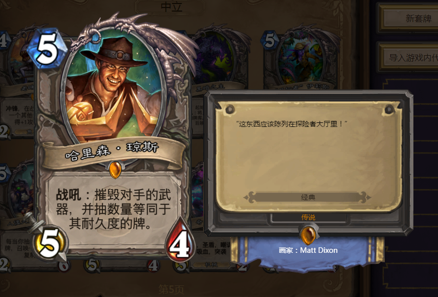 从效果上来看琼斯还是比较不错的,但触发效果的条件也算是比较特殊,所以只要当武器职业泛滥或者是胜率极高的时候,琼斯就出来了。遥想前段时间的弑君贼简直毒瘤中的毒瘤,使得很多玩家准备了超过5张的吃武器卡牌,琼斯也是其中之一。但随着弑君贼的削弱,琼斯又进入到冷宫直至下一次被唤醒。