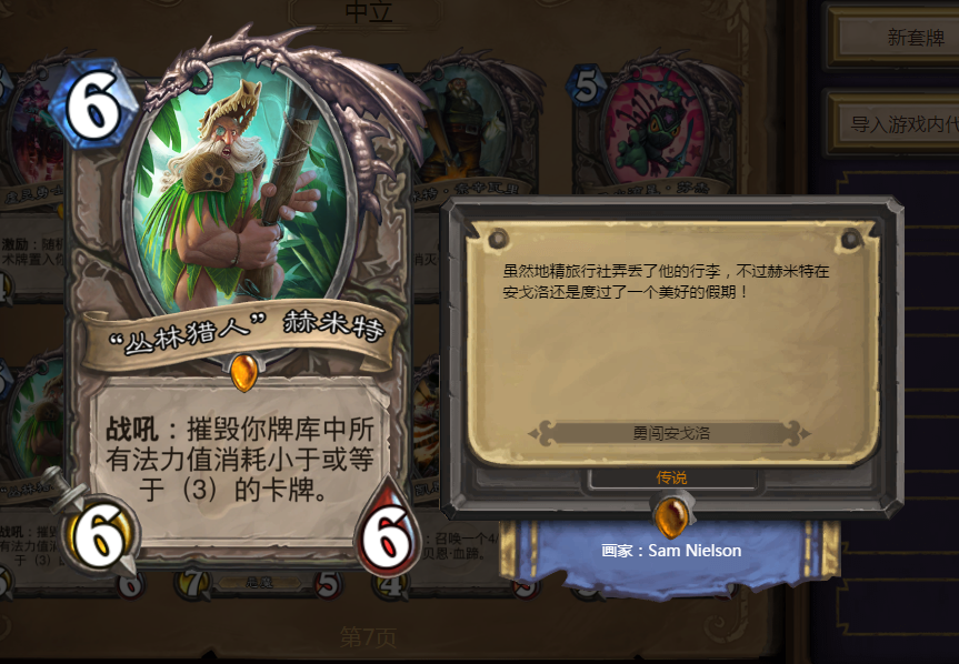 赫米特也算是炉石传说中比较具有传奇色彩的一张卡牌了,毕竟是一个可以拥有几张卡的角色。而这张卡的崛起要得益于另一张橙卡大主教(牧师偷卡组的那张),因为偷完卡组之后会让很多套路混合反而达不到效果,而赫米特可以先把这些卡牌都摧毁,然后用对手的套路来和对方过招。当然,玩法的需求条件过多使得这套卡组渐渐被大家遗忘,而赫米特也消失在大家的视野中。