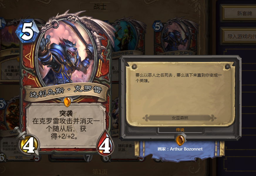 克罗雷的诞生让玩家们知道了官方推突袭战的决心,也有那么一个时刻突袭战还真的具备了一部分玩家。而作为突袭战的核心之一,克罗雷在这个时期中可谓是风光无限,让很多战士玩家大呼过瘾。但随着环境的变化,突袭战的强度不高使得这套卡组被大家所遗弃,克罗雷正式和大家说再见了。