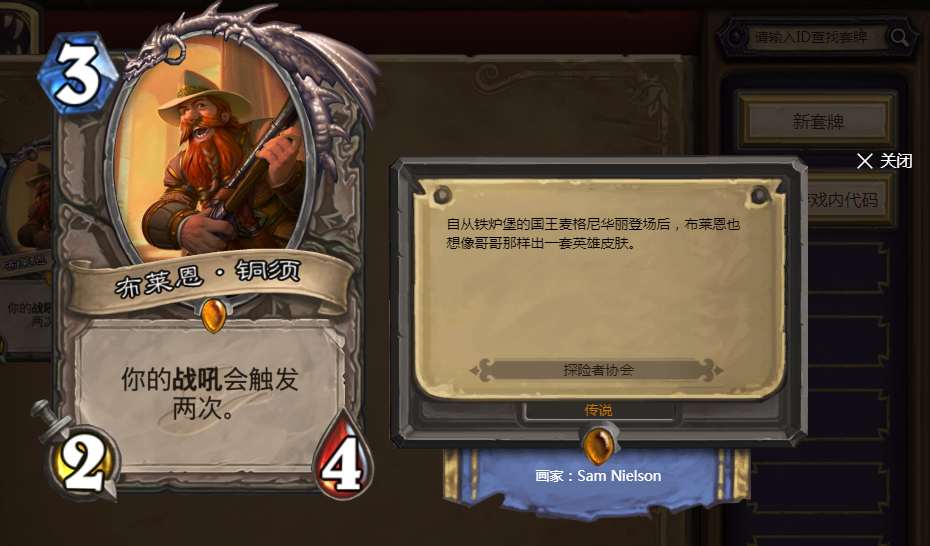 战吼触发两次,一直到目前都是一个万金油的存在。即使放到当前版本当中,由于许多优质的随从也依然具有非常不错的战吼效果,所以铜须的存在是绝对非常适合的。想当初,铜须搭配叫嚣打出斩杀的套路就并不罕见,所以这一次,你到底想如何合理利用铜须这张卡牌呢?