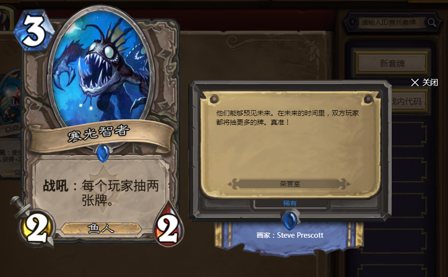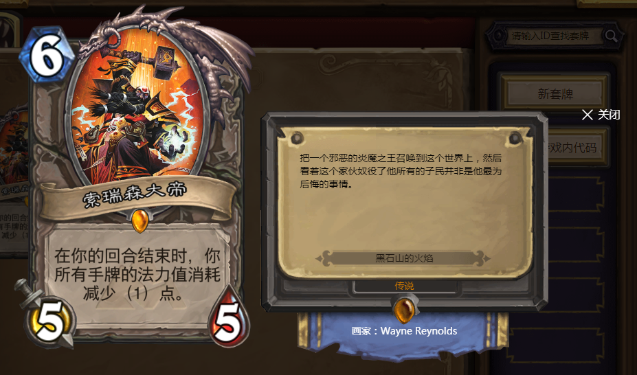 所有中速卡组的最爱,6费5/5扔出来之后还能减1费,就跟洛欧塞布一样,不一定指望这一张卡牌能打出什么逆天的效果,但是绝对指望他能够为我们带来一定的收益。所以,在认真考虑是否要打出去之后,建议你还是仔细看一下自己的手里到底有什么牌。这样一来,这张卡牌的功效才能发挥到了极致。