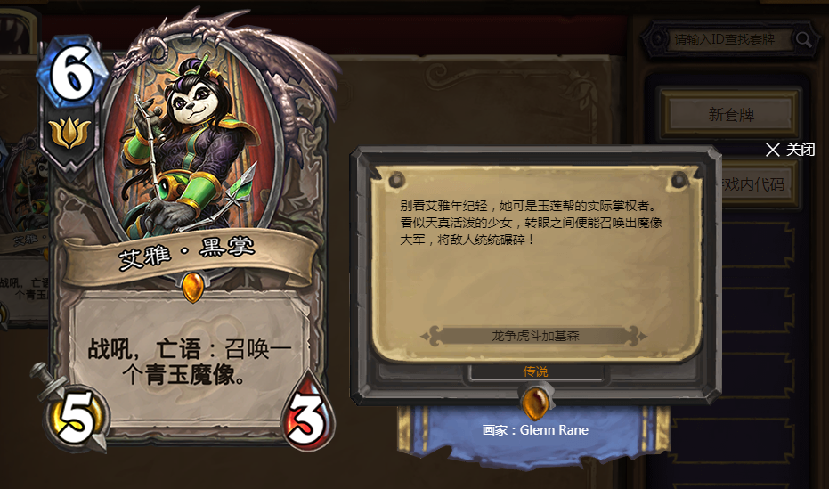 青玉体系虽然已经离开了标准环境是,但是在狂野环境中他们有着非常不错的战斗力。什么,你要说游荡恶鬼可能要将青玉护符撕掉,是的,所以我们还是找找黑掌吧。毕竟青玉体系并不只是只有一个青玉护符。此时,也许你就要开始怀念黑掌的好了。战吼搭配亡语可算是总共能叫出两个青玉魔像了啊。