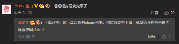 截止目前,巨鸟多多工作室已经注意到了外挂或是脚本的问题,并在今日凌晨发布微博,”希望各位棋友珍惜自己的账号“。