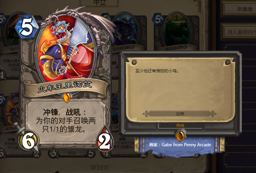 随着突袭效果的推出,我们会发现关于冲锋的随从越来越少,包括有些能提供冲锋效果的随从也一并被砍。这里就不得不说下快攻职业基本都会带的火车王,5费6/2带冲锋在很多时候都能提供一个斩杀的作用,相信听到“我是火车王”的玩家大部分都跑了,种种迹象都让火车王有进荣誉室的风险。