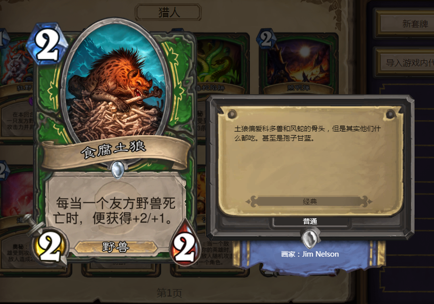 犹记当年1费雄斑虎2费土狼能打退大多数的职业,让猎人这个职业可谓是横行霸道,各种打脸猎让玩家们苦不堪言。如今,雄斑虎变成了魔泉山猫继续养土狼,只要你解不掉土狼就只有输。这种情况下的土狼还是有点危险,毕竟又加攻又加血的随从基本都没了,你们觉得呢?