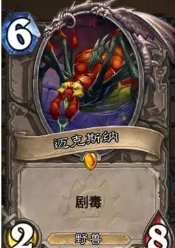 迈克斯纳是《炉石传说》第一个资料片纳克萨玛斯的产物,这个版本给大家奉献了许多经典的卡牌,例如淤泥喷射者、克尔苏加德、送葬者、洛欧塞布,相比于这几个热门卡牌,大蜘蛛迈克斯纳就有些尴尬了,从现在的角度来看,迈克斯纳的身材特效只值4费,或者说配不上橙卡的标准,毕竟当时还没有剧毒的概念,但是现在的版本中,剧毒随从已经非常普遍,迈克斯纳甚至不如一些非橙卡强力,什么倔强的蜗牛、石皮蜥蜴,都能完爆它。