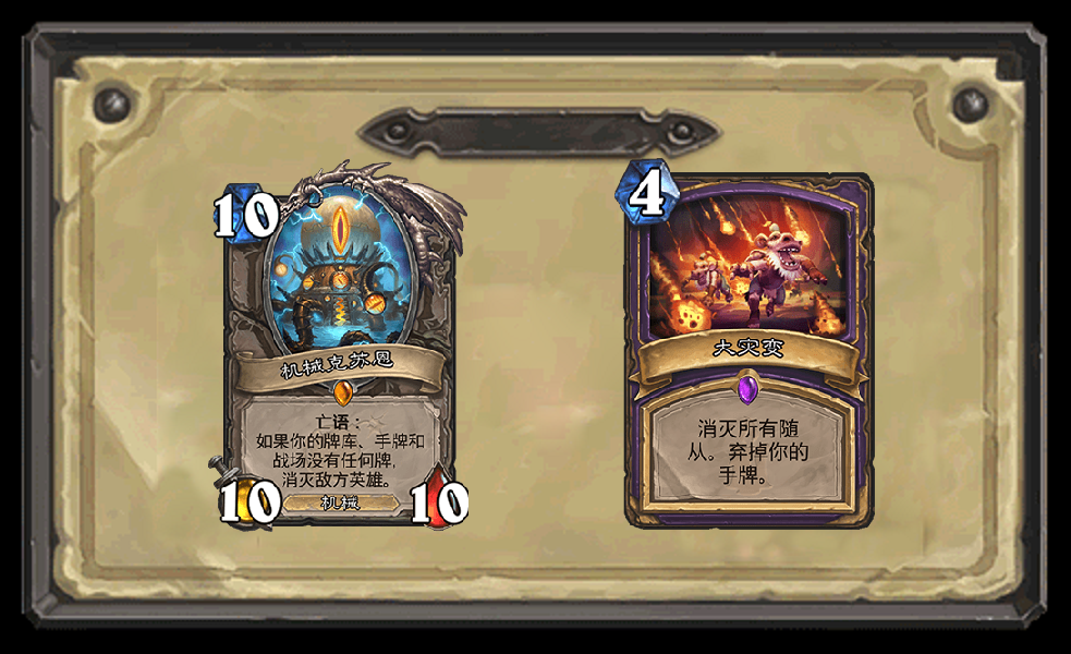 炉石传说中,斩杀、OTK等词语,都是游戏中高频词的出现语。对于喜欢OTK的玩家们来说,斩杀带来的是一种高爆发击败对手的快感。在游戏中,正常的OTK卡组在执行斩杀行动的时候,一般的对战回合已经超过了10费的法力水晶状况(不排除曾经的777德以及新版亡语蓝龙贼在5-8费回合斩杀对手的变态牌序)。但是,“1费能够斩杀对手”,作为一个“不可能完成的任务”,你能想到有什么方式来完成呢?