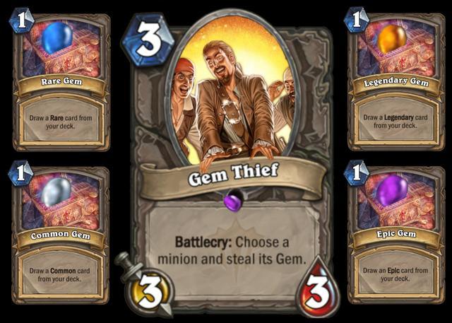 偷到的宝石是一张"从你的牌库中抽一张对应稀有度卡牌"的1费法术。