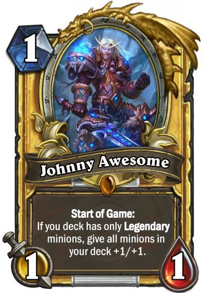 对战开始时:如果你的套牌中只有传说随从牌,则你的套牌中所有随从牌获得+1/+1。