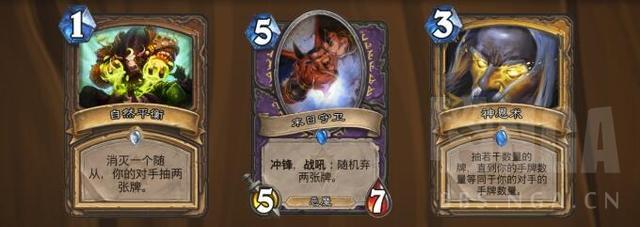 德鲁伊的这张单解虽然负面作用很大(让对手抽两张牌),但还是一直在被使用,而且他和德鲁伊的职业特性非常不符合,因此我们还是决定让他退环境。