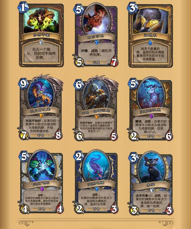 然而在这次的更新中,自然平衡加入荣誉室无疑是最让人开心的了。相信不少玩家都曾被爆牌德给恶心过,这个卡组可以说是非常毒瘤的。而爆牌德的核心除了爆牌系列必带的寒光智者之外,自然平衡也是非常关键的一张牌。正常情况下,自然平衡已经很恶心了,毕竟1费就可以解掉一个9费、10费的大哥。但是自然平衡给到爆牌德就更加恶心,不仅可以解大哥,还可以爆对手两张牌!