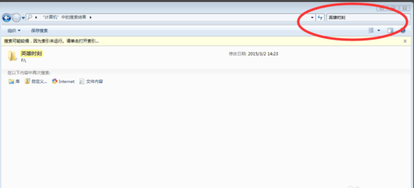第二步:打开“计算机”,在右上角搜索“英雄时刻”,便会出现文件夹“英雄时刻”的位置,记住。