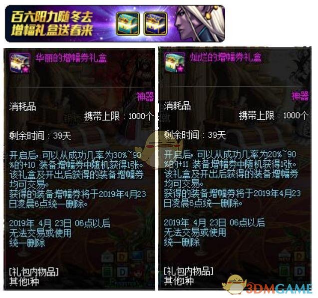 魔盒新增了一个东西,那就是增幅券礼盒,但是随机概率的成功率。